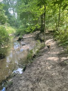Spaziergänge frühmorgens im Wald/Schatten sind herrlich! Die Sonne steht noch nicht so hoch, die Wege sind oft noch verschattet und selbst wenn die Temperaturen außerhalb des Waldes schon wieder auf über 27° Grad gestiegen sind, erleben wir im Wald noch angenehme 20-23° Grad. Sollten Sie dann noch das Glück haben, das ein Bächlein im näheren Umkreis im Wald fließt – das ist wie Urlaub für Sie und Ihren Hund.